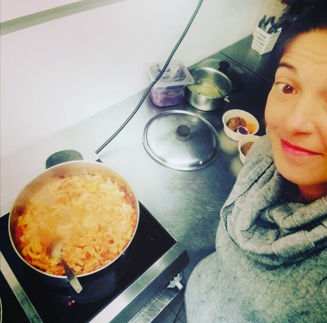 Zuppa di patate e carote viola con cavolo nero e capperi